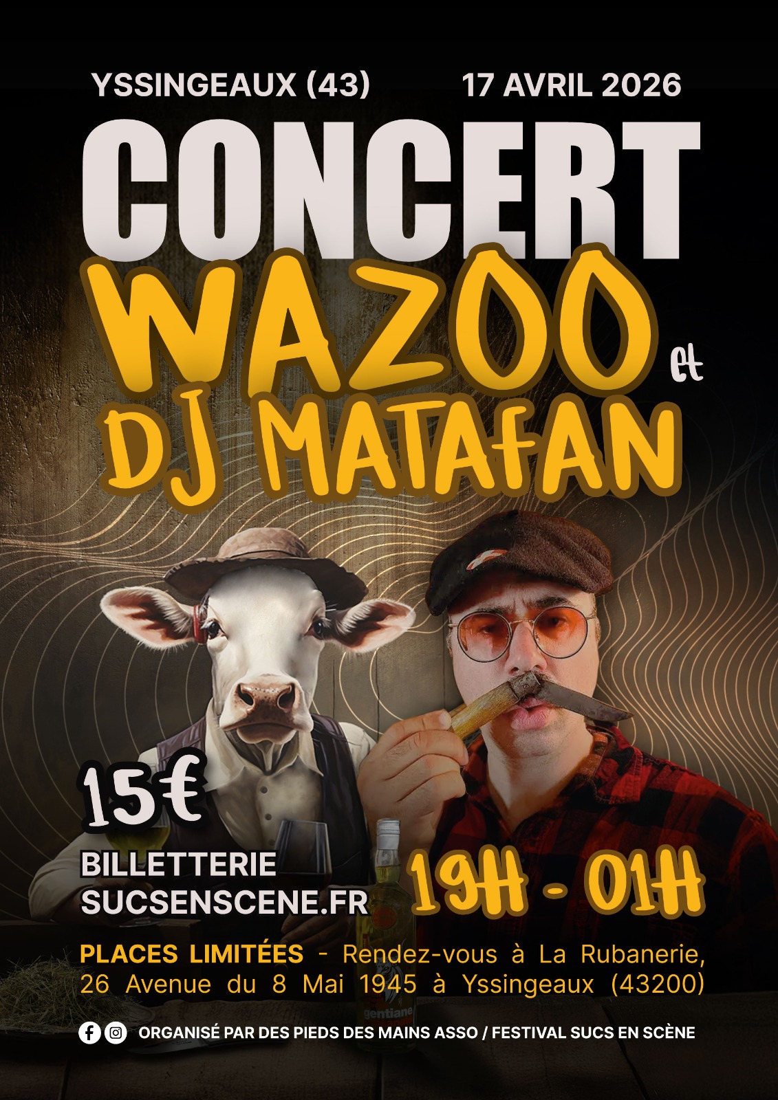 Salut les petits sucs, vous êtes ici chez vous ! Sucs en Scène, c’est bien plus qu’un simple festival… C’est une aventure musicale et humaine portée par l’association Des Pieds Des Mains 43 tout au long de l’année ! ✨